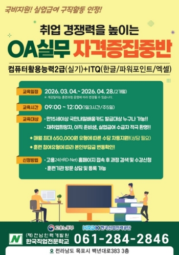 ★ OA실무과정반 (컴퓨터활용능력2급실기+ITQ한글/파워포인트/엑셀) 3월 4일 개강